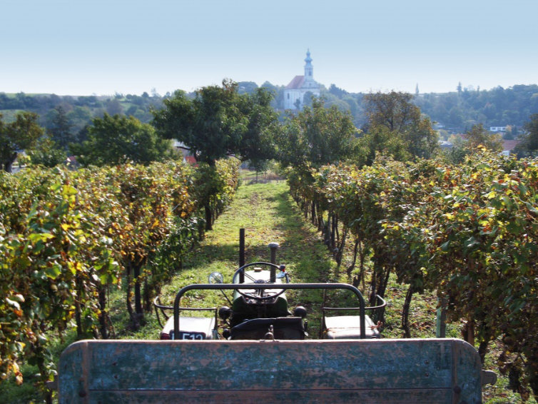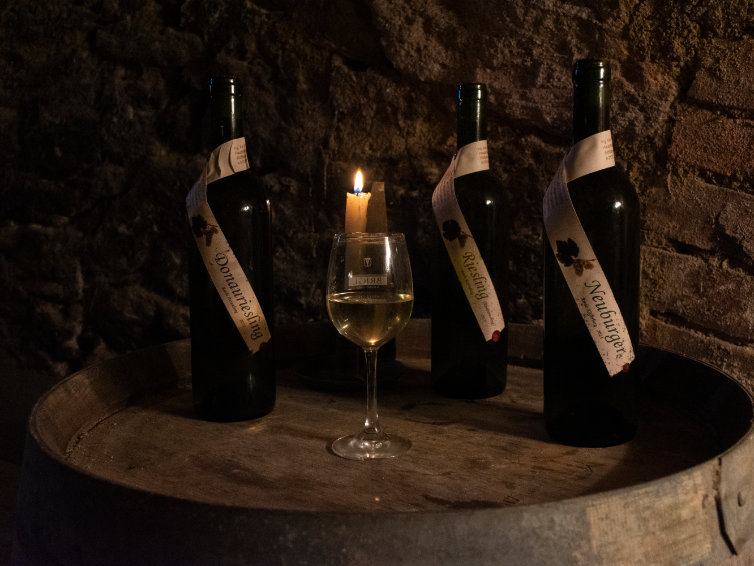Im Presshaus, nur wenige Schritte von der Obstwiese entfernt, kann man das Pressen von anno dazumal hautnah erleben. Die alte Baumpresse ist der ganze Stolz des Weinbauern Karl Parbus, mit viel Freude erklärt er die Funktion der Presse und im Keller lädt er ein, den Lohn der Arbeit zu verkosten.